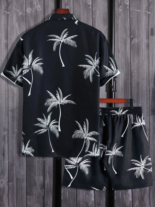 Men's Palm Tree Print Top and Shorts Summer Set